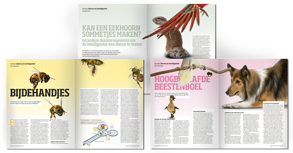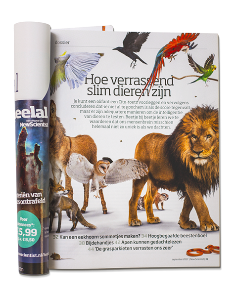 Dossiercover 'Dieren en intelligentie' (voor New Scientist)